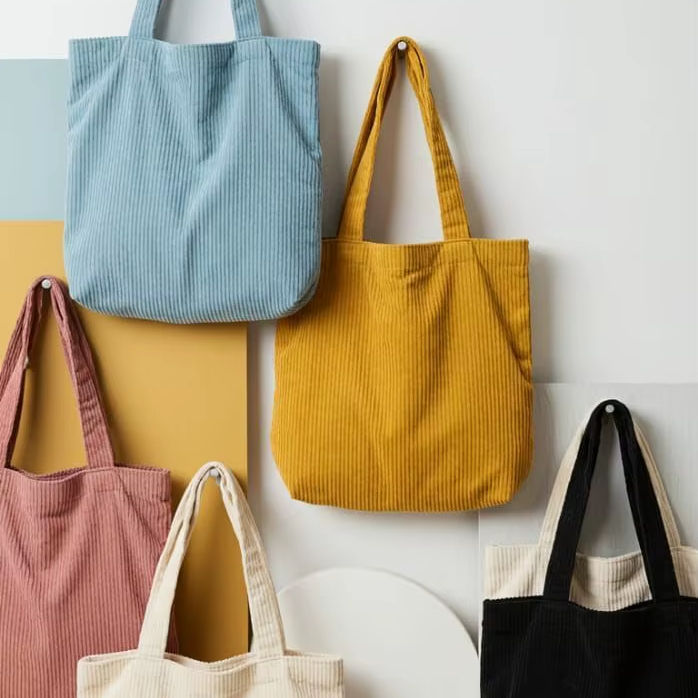 Best Price Shoulder Bag Women Soft Ribbed Velvet Tote Handbag Reusable Shopping Grocery Carrier Casual Student Book Purse Large
