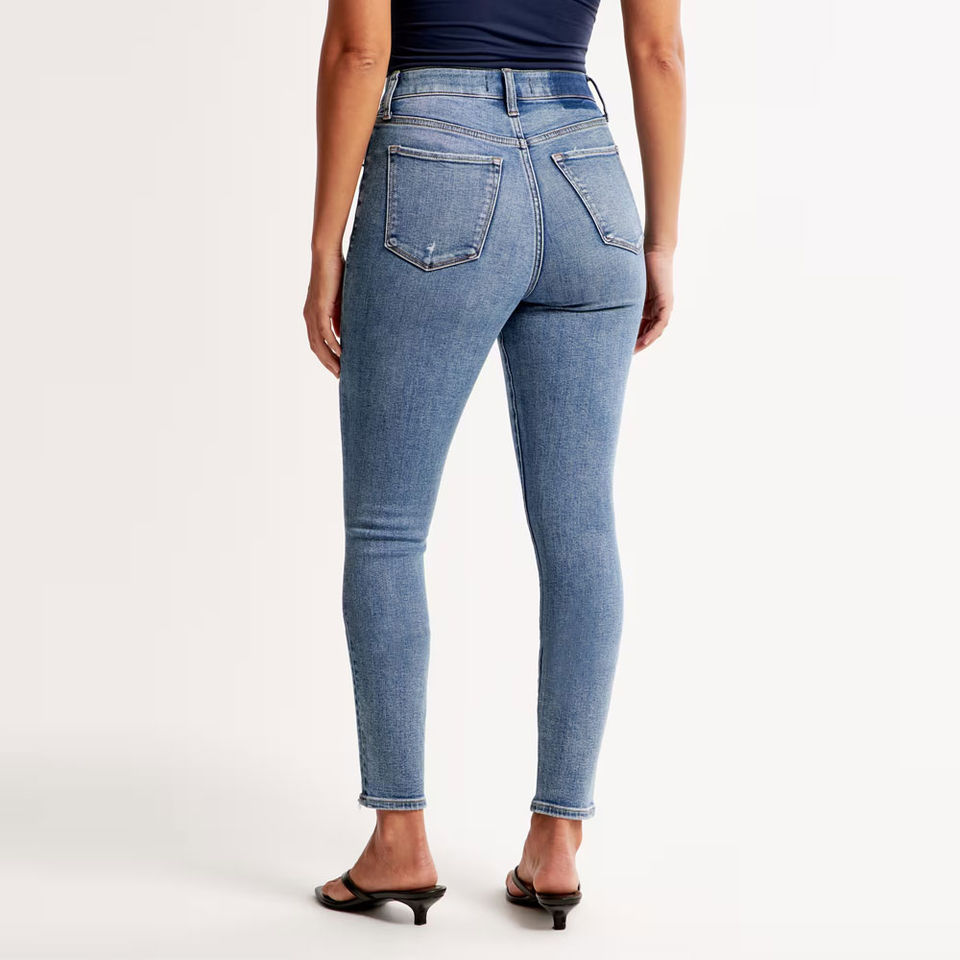 Best Price Stretch High Waist Skinny Denim Jeans for Women Winter 100% Cotton Vintage Light Wash