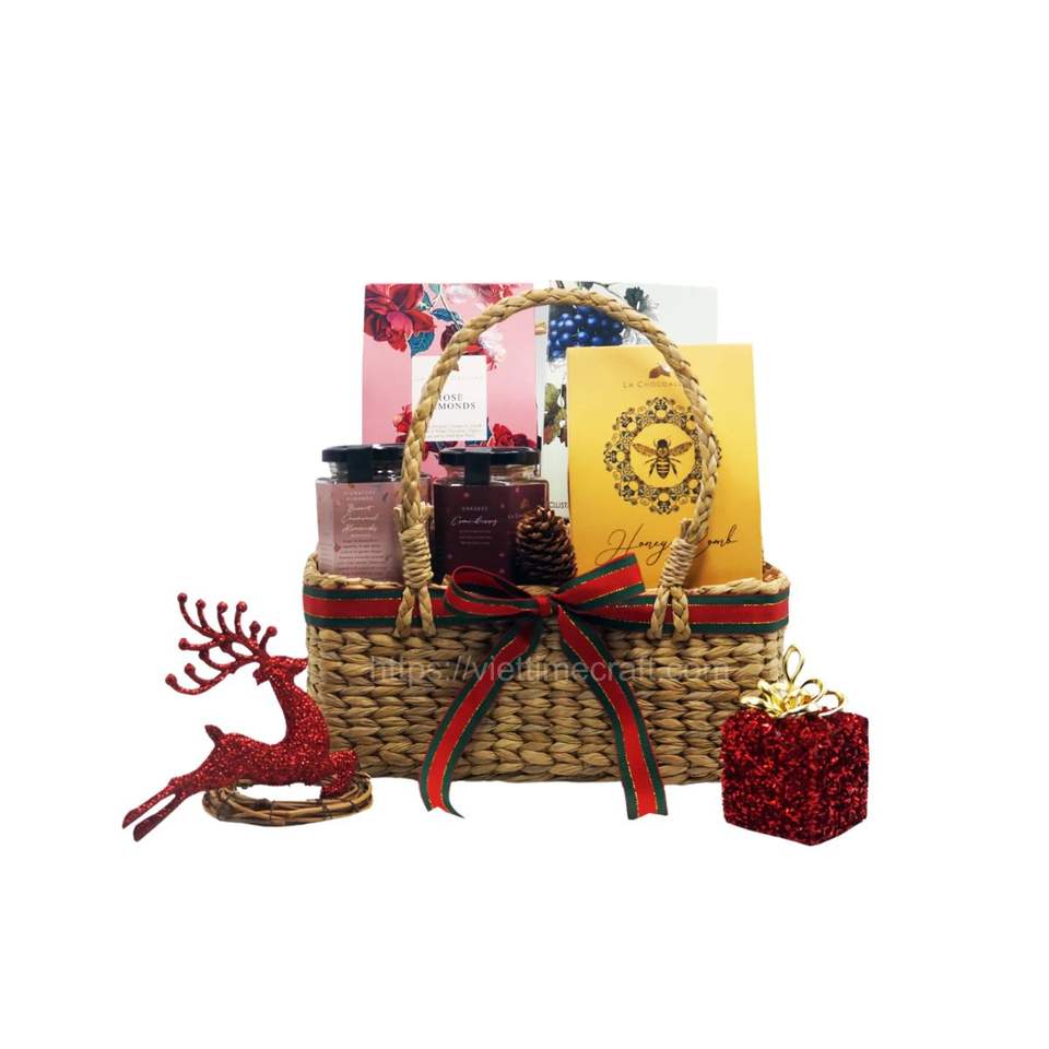 Best Price Water Hyacinth Gift Hamper, Gift Basket for Christmas, Storage Basket With Handle Wholesale