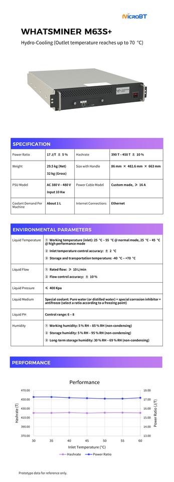 Best Price Whatsminer M63S+ 412T 424T 7208W New Hydro Cooling BTC ASIC Miner Bitcoin Mining Machine