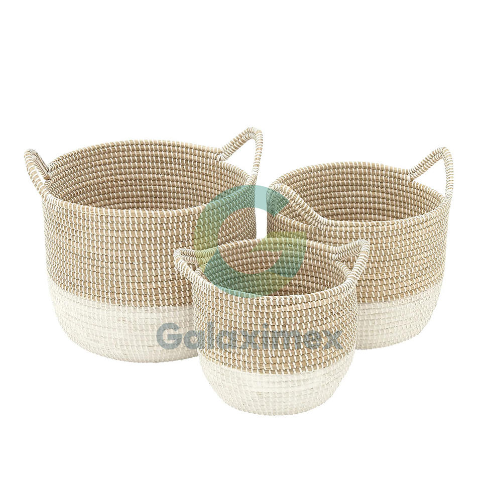 Best Price White Ombre Seagrass Storage Baskets Durable Wicker Handles for Home Organization Bathroom Use for Laundry Cotton