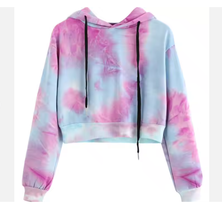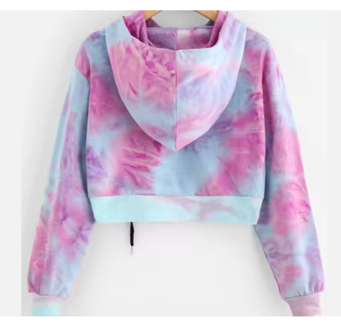 Best Price Women's 100% Cotton Short Sweatshirt Long Sleeve down Shoulder Tie dyed Crop Sweat Shirts Hoodies