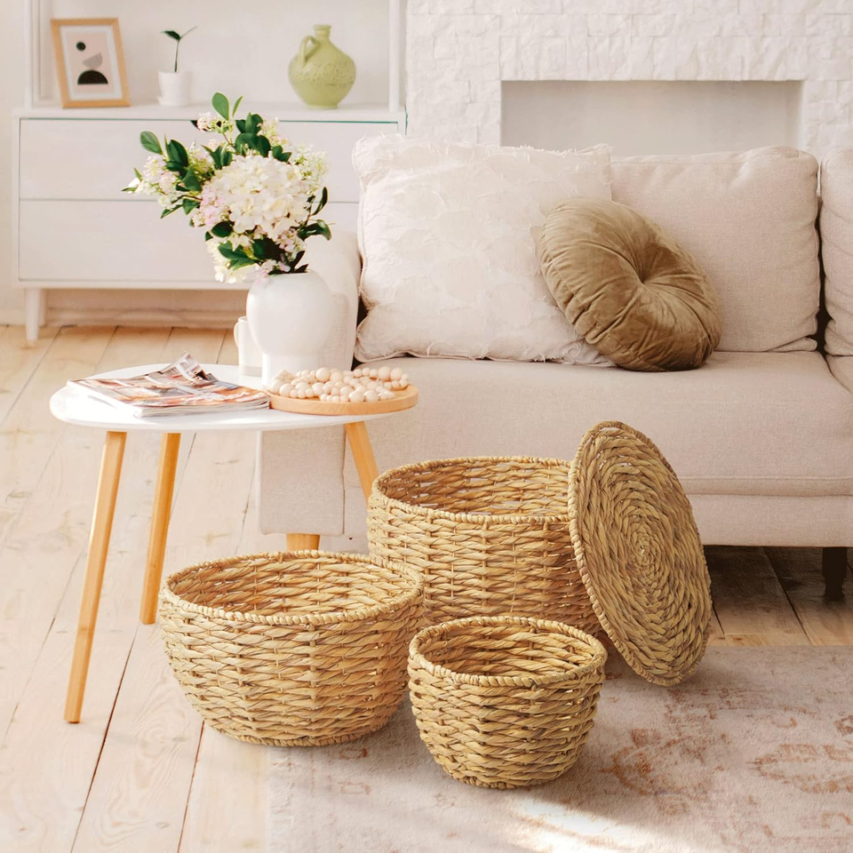 Best Price on Vietnam Handmade Water Hyacinth Storage Basket Eco-friendly Weaving Technique Lid for Living Room Closet Bedroom