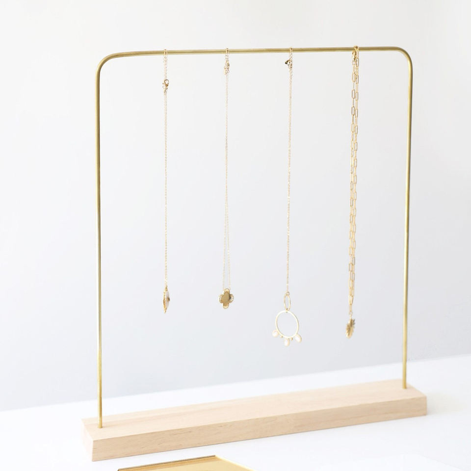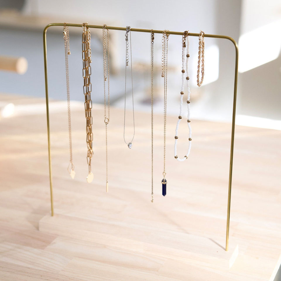 Best Product Cheapest Price Wood Base Natural Finished Iron Frame Gold Bracelet Necklace Jewelry Stand Tabletop Usage Home Deco