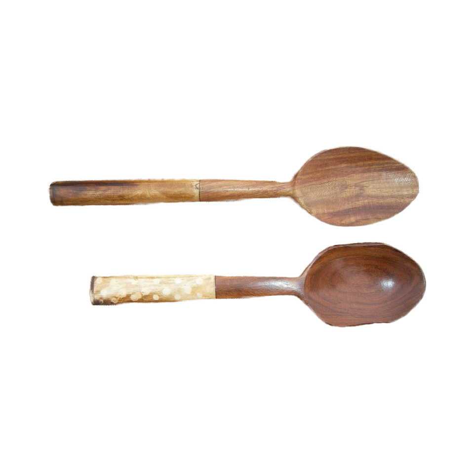 Best Product White Printed Handle Wood Spoon and Fork Set Lightweight Long-Handle Salad Server Wedding Gift Flatware