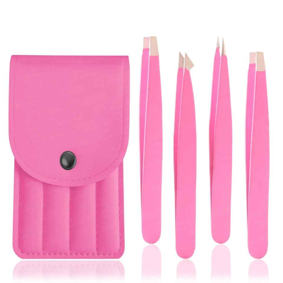 Best Professional Top Rated Slanted Tip Stainless Steel Reusable Eyebrows Tweezers Set of 4PCS