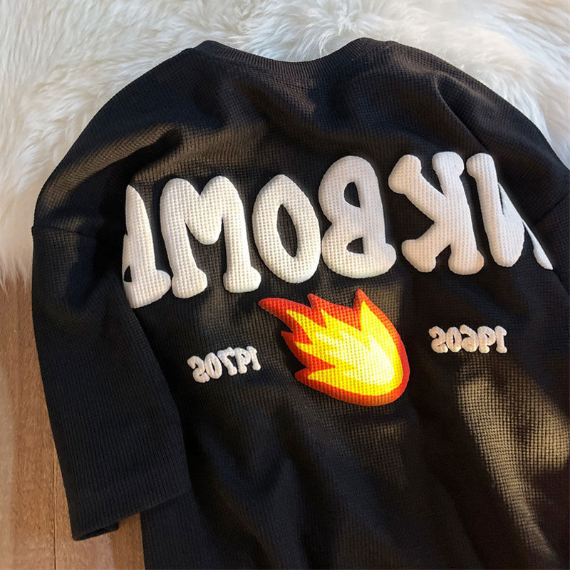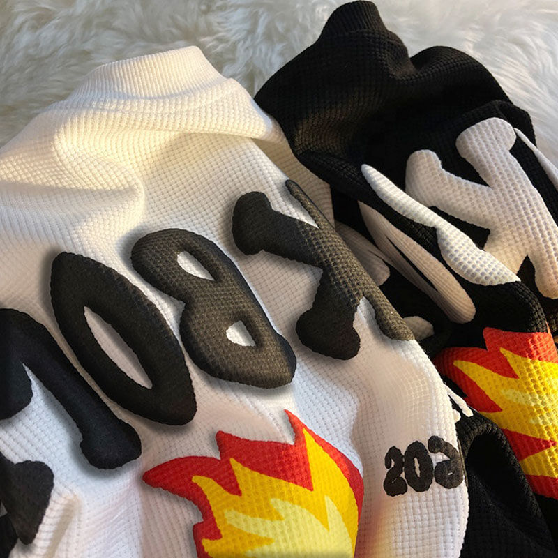 Best Quality 100% Cotton Heavyweight Waffle Loose Fit 3D Puff Printed Men's T-Shirt Streetwear Casual Style