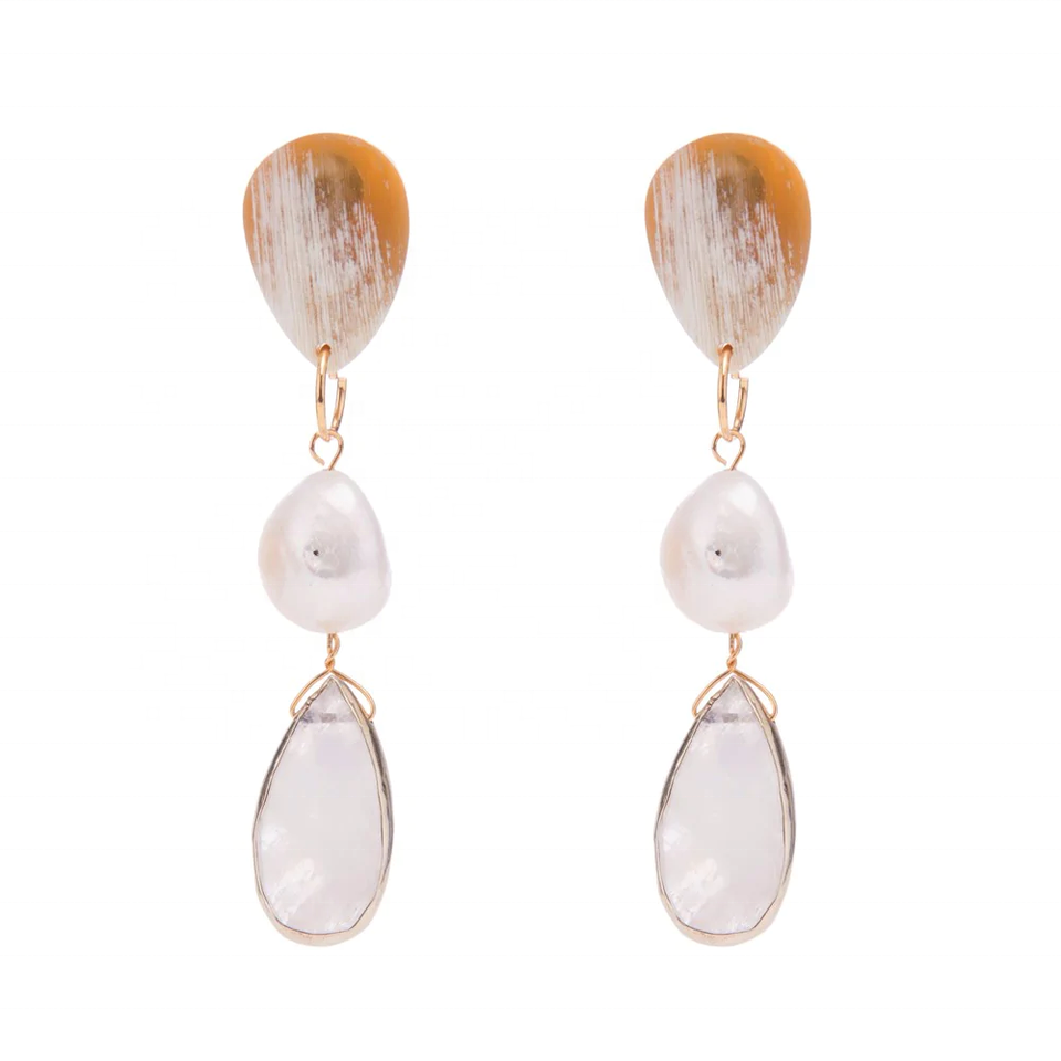 Best Quality 100% Natural Eco-Friendly South African Ox Horn Chandelier Earrings New Look Pearl Jewelry for Women Girls Fashion