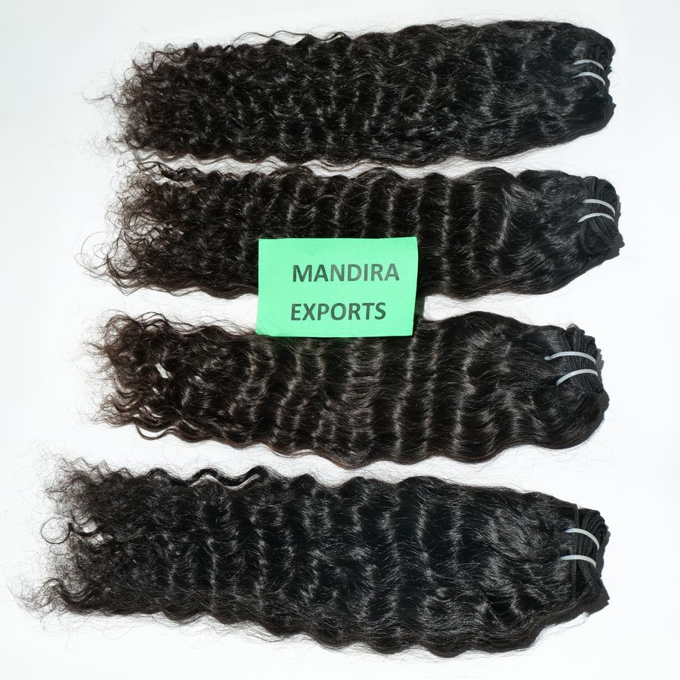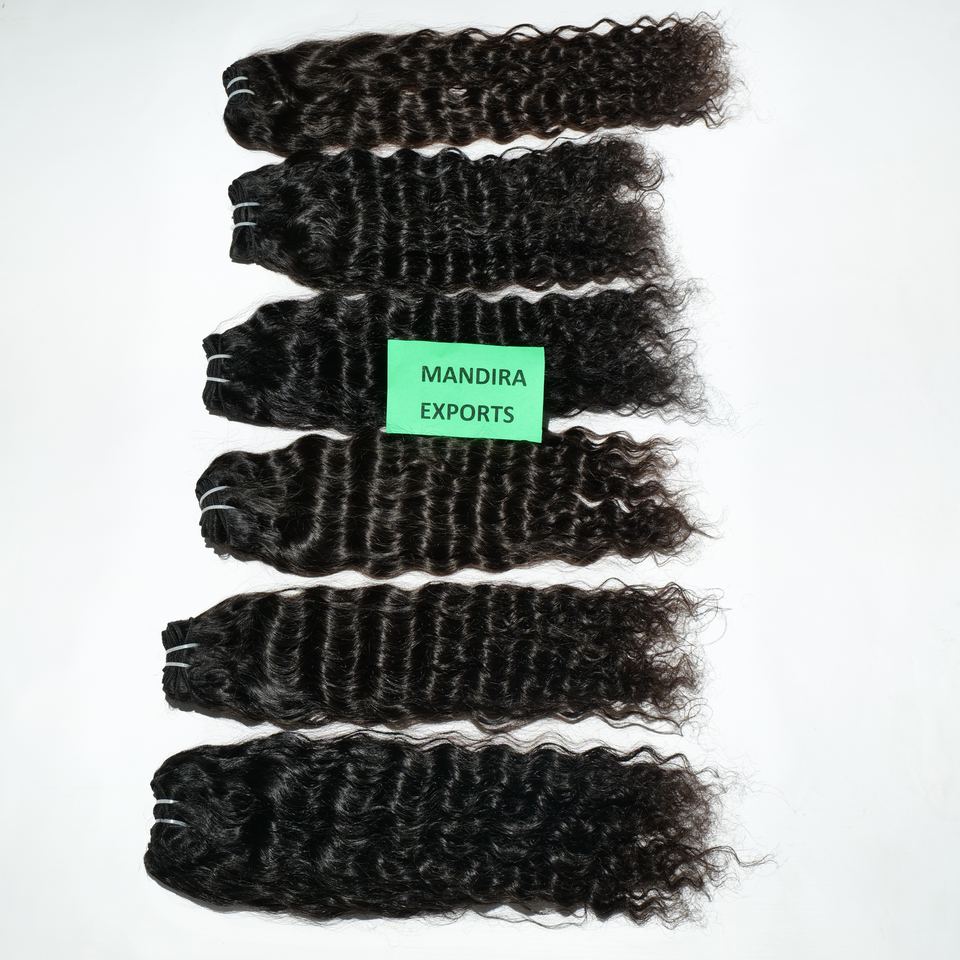 Best Quality 100% Virgin Indian Temple Human Hair Extensions Vendor's Curly Natural Bundle Shine Black Color Wave Curl Styles