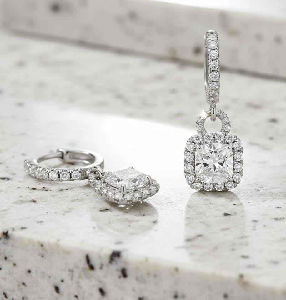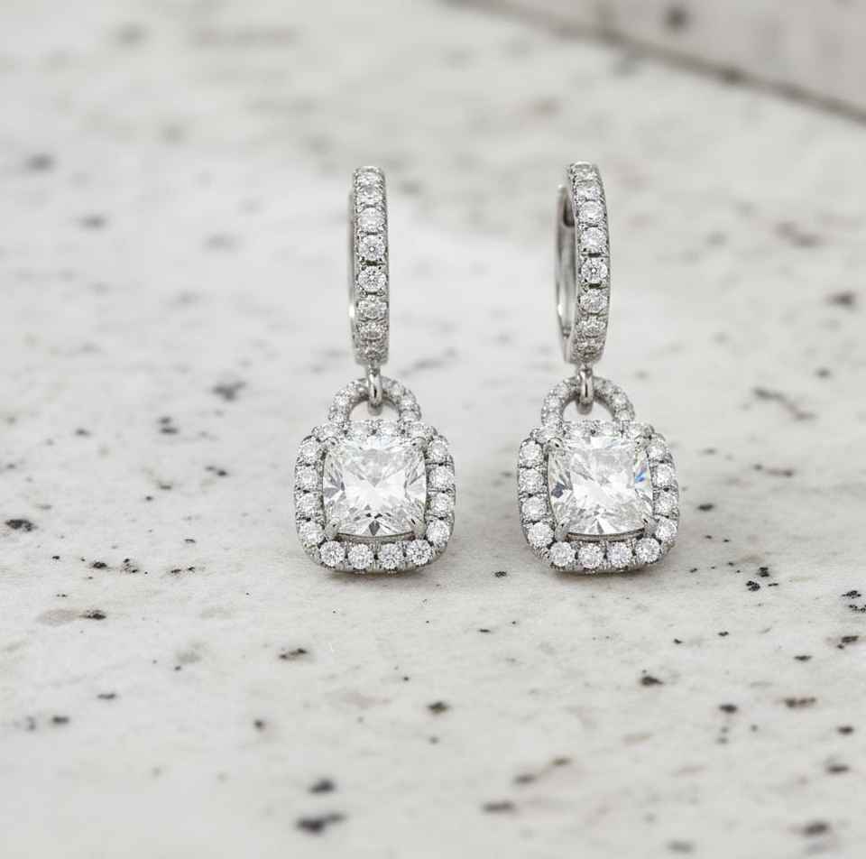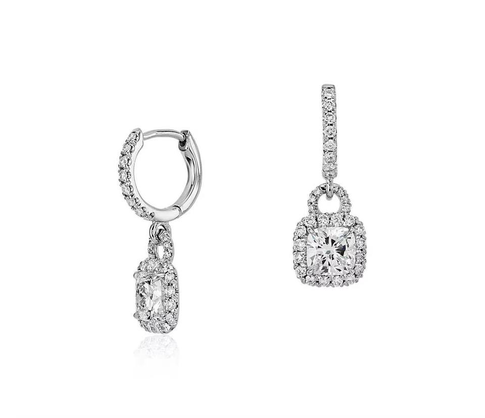 Best Quality 14K Gold Cushion Cut Halo Lab Grown Diamond Dangle Earrings for Girls Fine Jewelry Diamond Earrings