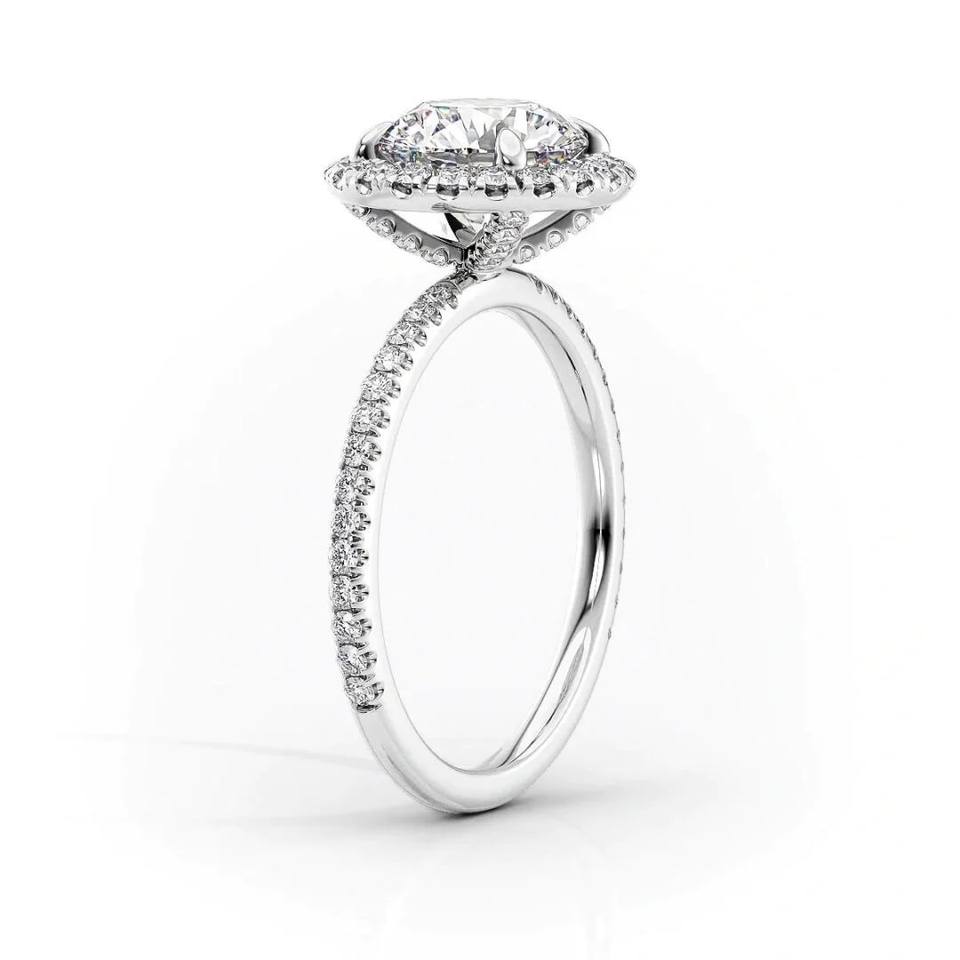 Best Quality 14K Gold Plated Halo Engagement Ring with Round Cut Moissanite Pave Set Side Stones Trendy Unisex New Arrival