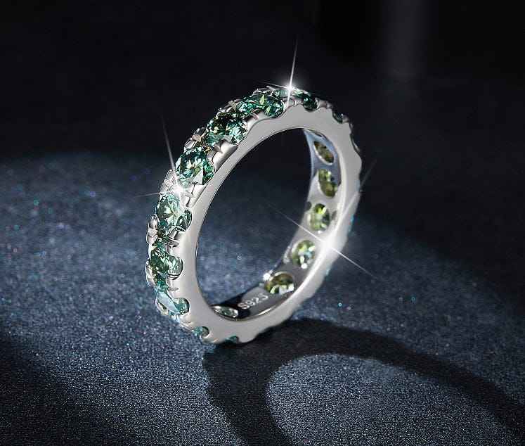 Best Quality 14K White Gold Eternity Ring 4mm Green Moissanite Diamond Round Brilliant Cut Fashionable Style