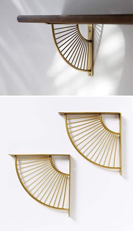 Best Quality 2 Piece Brass Floating Shelf Bracket Wall Mounted Fan Shape Arm Decorative Shelving for Home Decor