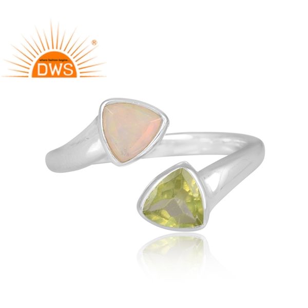 Best Quality 2026 Sterling Silver Natural Peridot & Ethiopian Opal Gemstone Stackable Ring For Women Jewelry Manufacturer