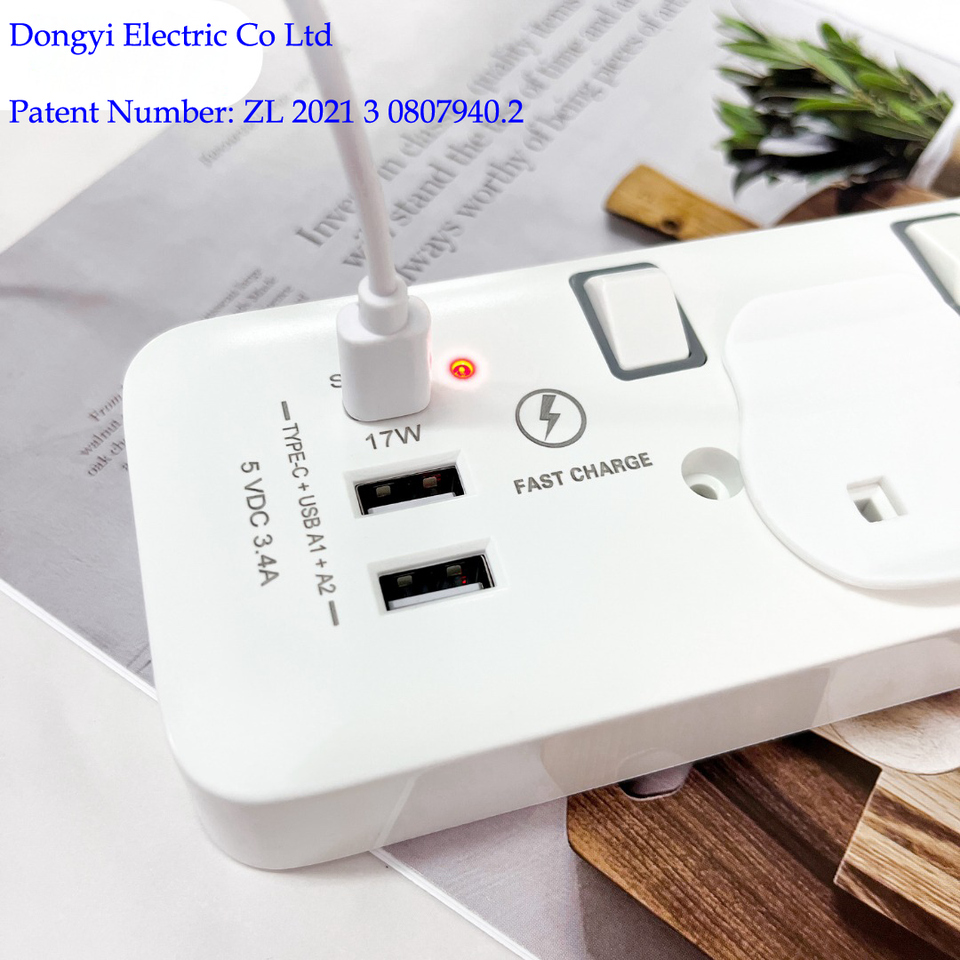 Best Quality 3250W BS UK Power Strip 2 USB 1 Type C Ports 13A Fuse Quick Charge 3 Outlets Worldwide Universal Plug Fire