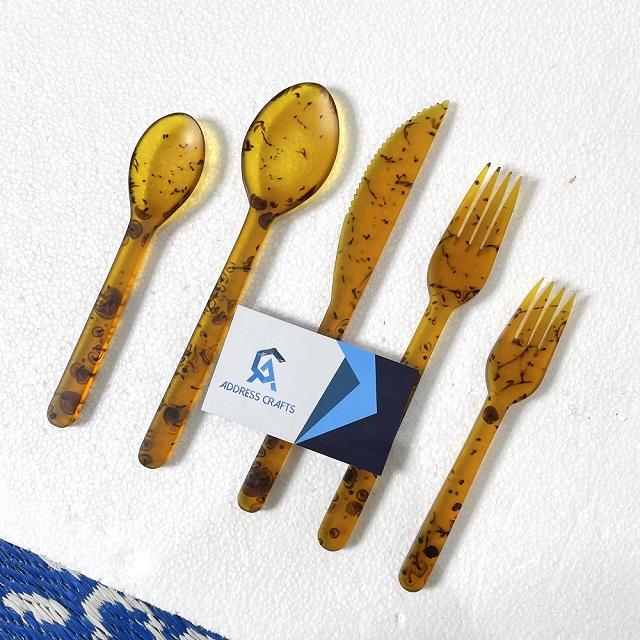 Best Quality 5-Piece Royal Design Resin Flatware Set Safe for Food Cutlery Including Spoon Fork Knife Wedding Tableware Decor