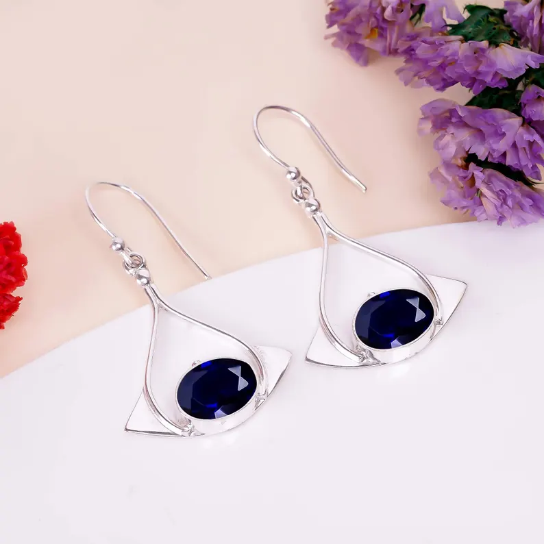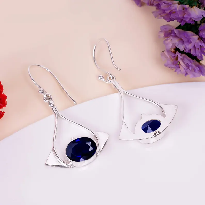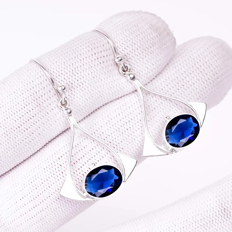 Best Quality 925 Sterling Silver Drop Dangle Earring Blue Sapphire Gemstone Handmade Bohemian Elegant Design for Gift