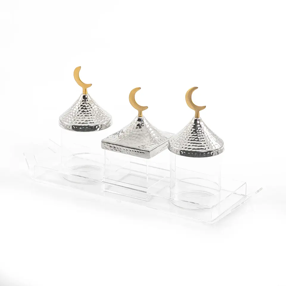 Best Quality Acrylic Dessert Jars with Hammered Lids in Fancy Design Perfect for Round Chocolate and Snacks Storage