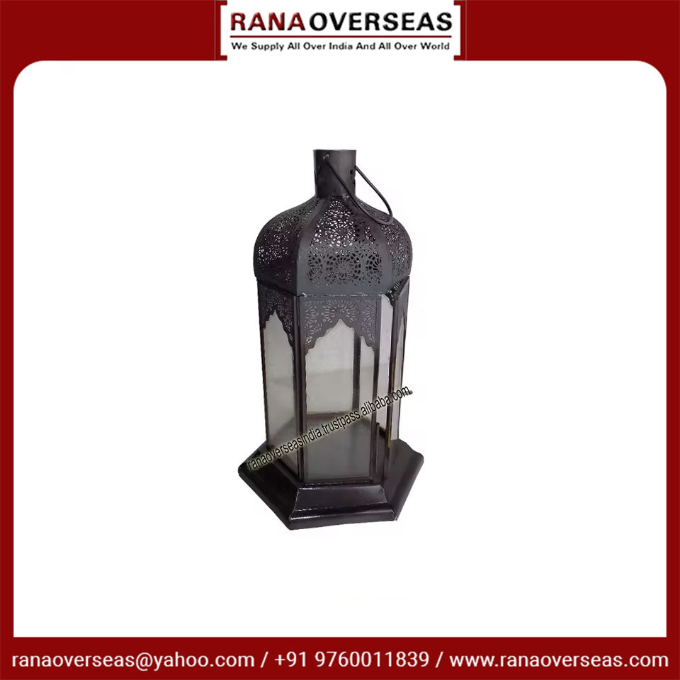 Best Quality Antique Black Iron Hexagonal Candle Lanterns for Home Christmas Events; for Cafe Restaurant Decoration Price