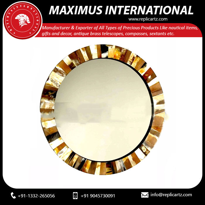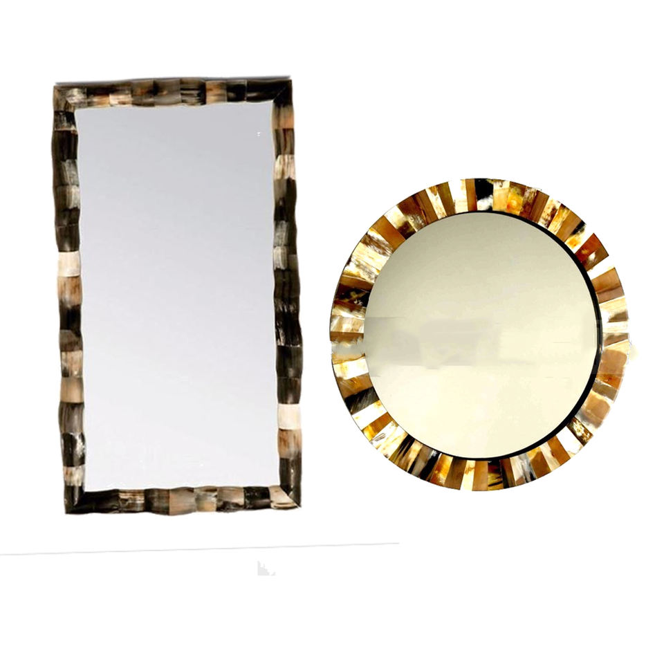 Best Quality Art Deco Design Metal Frame Wall Mirror Horn Inlay Vanity Washroom Bathroom Entryway Living Room Decor