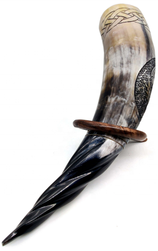 Best Quality Authentic Viking Style Agate Beer Drinking Horn Mug Custom Logo Eco-Friendly Carved Iron Stand Animal Design