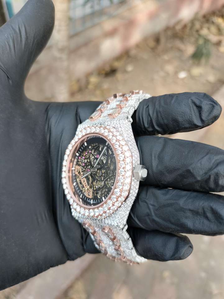 Best Quality Automatic Diamond Watch for Men with Transparent Back Case and Mechanical Movement Available At Best Price