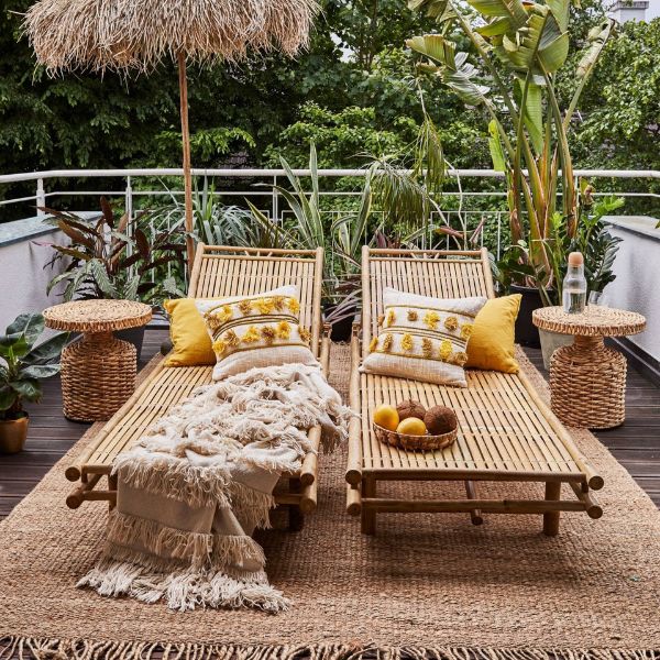 Best Quality Bamboo Sun Loungers Cushions Foldable Weather Resistant Modern European Design Hotel Outdoor Beach Swimming Pool