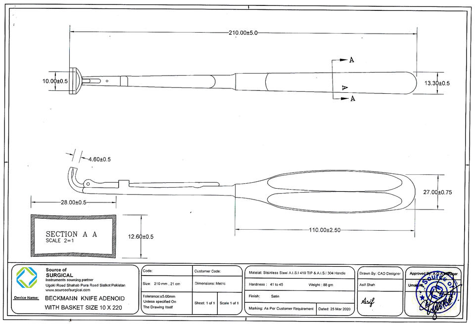 Best Quality Beckmann Adenoid Curettes Instruments Reusable Beckman Adenoid Curette Ear Nose and Throat Curettes