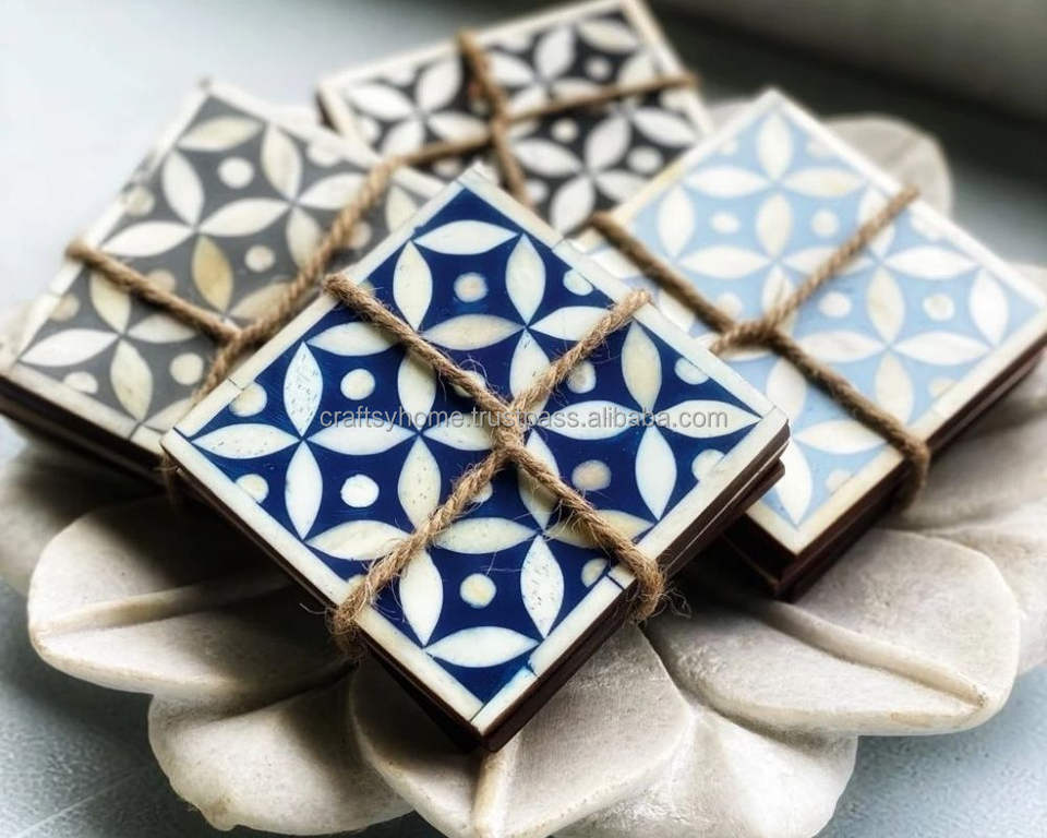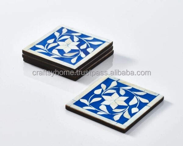 Best Quality Bone Inlay Coaster in blue and White color Bone inlay Decorative Latest Arrival Coaster set for Dinning Party