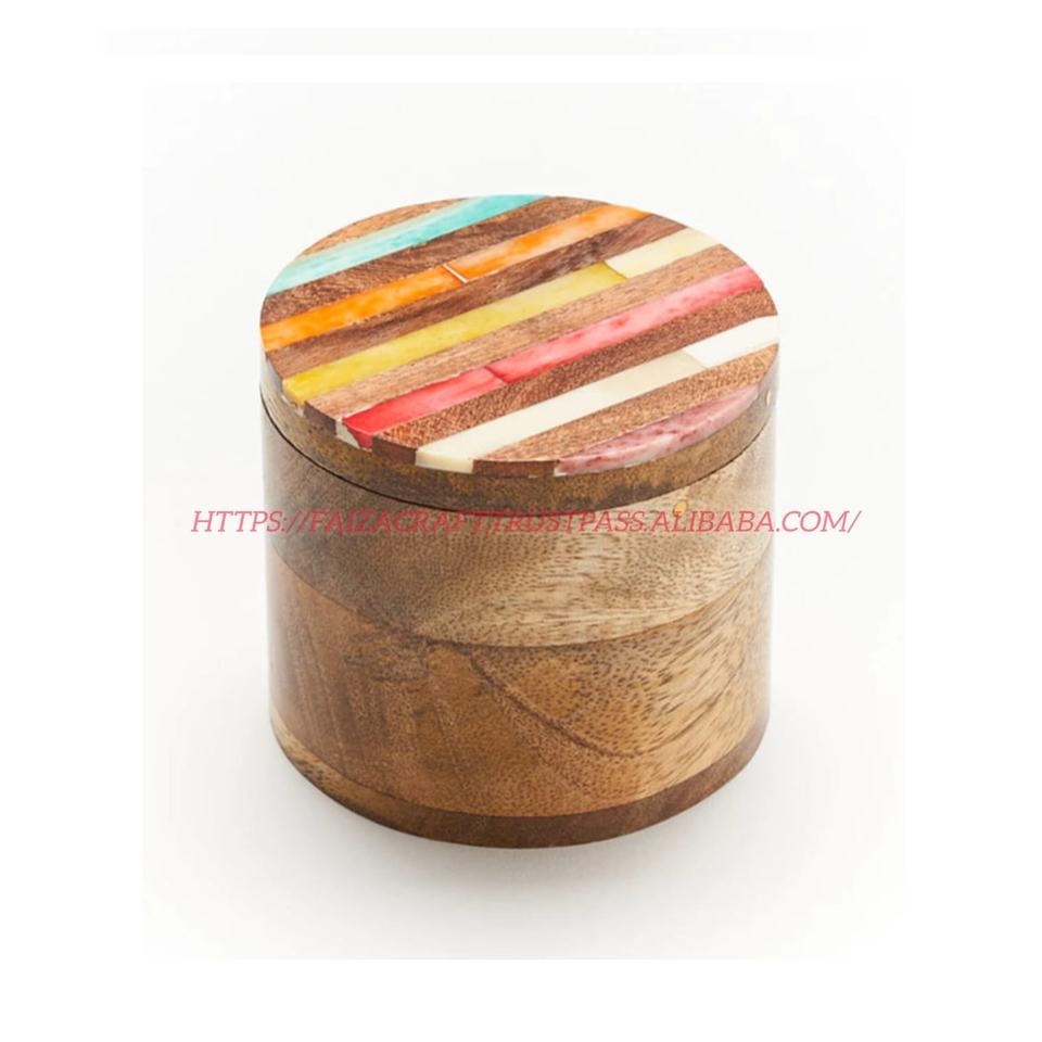 Handmade Resin Inlay Wood Box with Bone Inlay Triangle Pattern Decorative Jewelry Box Handmade in India