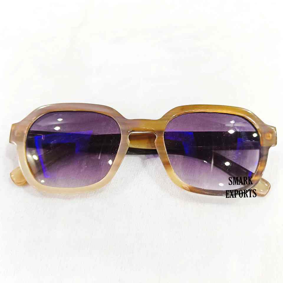 Best Quality Buffalo Horn Sunglasses Dark Brown Color Frame and Parple Lenses: for Men and Women Easy to Fit