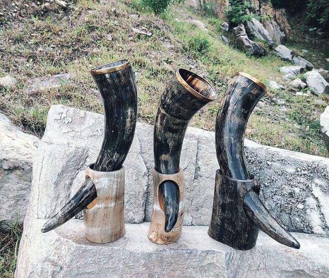 Best Quality Buffalo/Ox Drinking Horn/Natural Viking Mug Drinking for Molding Brass Rim With Horn Stand for Sale