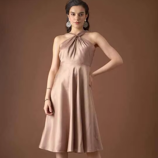 Best Quality Casual Shoulder Strap Satin Fit and Flare Midi Dress for Girls Perfect Gifting Option Available Now