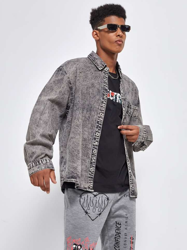 Best Quality Casual Snow Washed Wholesale Grey Denim Jacket Men Shirt Thick Mens Denim Shirts