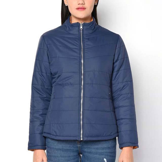 Best Quality Causal Wear Women Puffer Jackets Hot Selling Customized Logo Plain Design Breathable Knitted Navy Blue Color