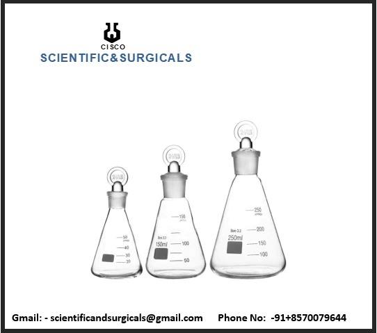 Best Quality Clear Borosilicate Glass Conical Flask with Interchangeable Stopper for Lab and Educational Use Cisco Brand