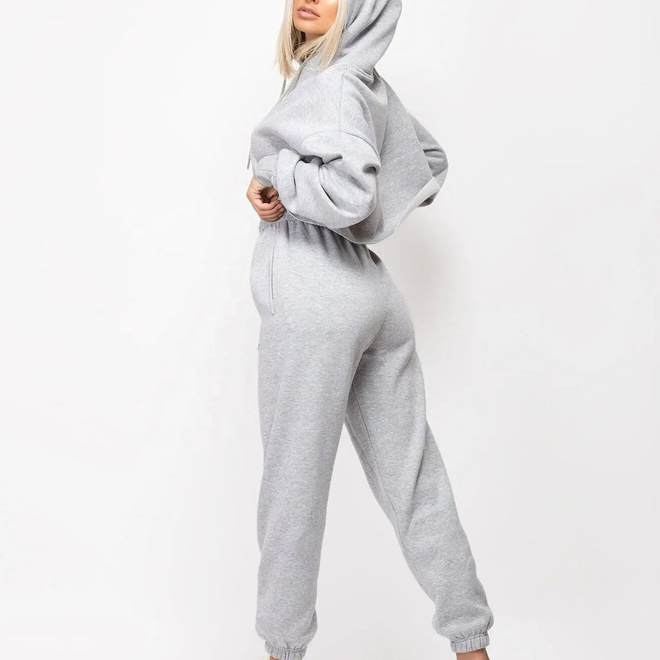 Best Quality Cotton Fleece Ladies Tracksuits Set OEM Custom Female Training Sports Wear Two Piece Jogging Suit Crop Winter