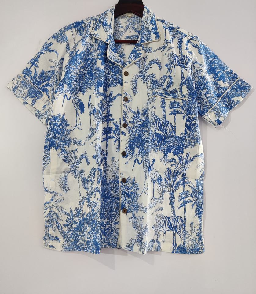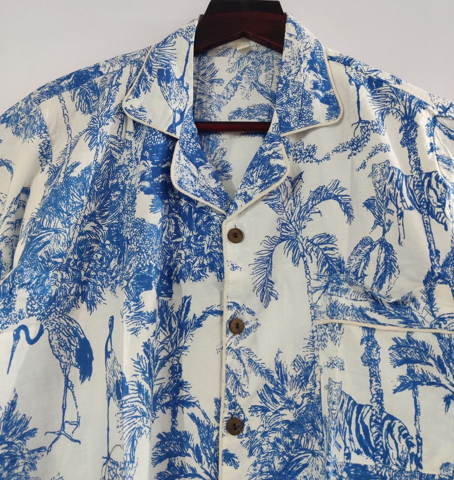 Best Quality Cotton White and Blue Jungle Print Women Pajama Set Pure Cotton Short Pajama Set Short Sleeve Shirt Boxer With Bag