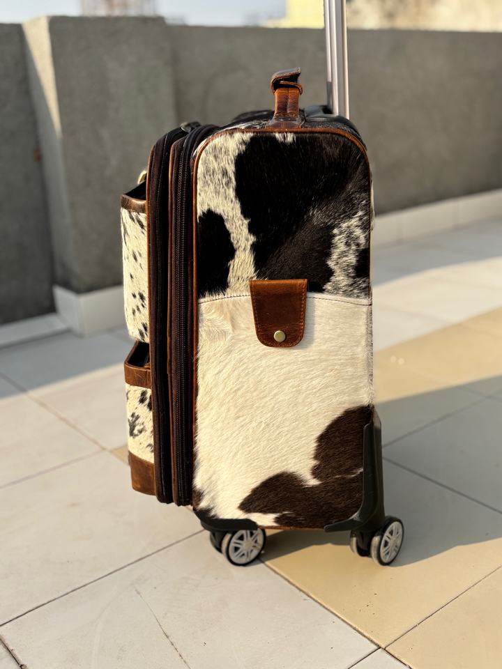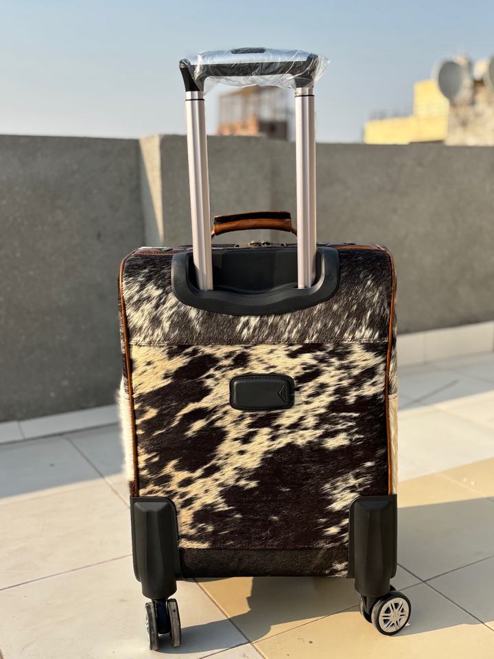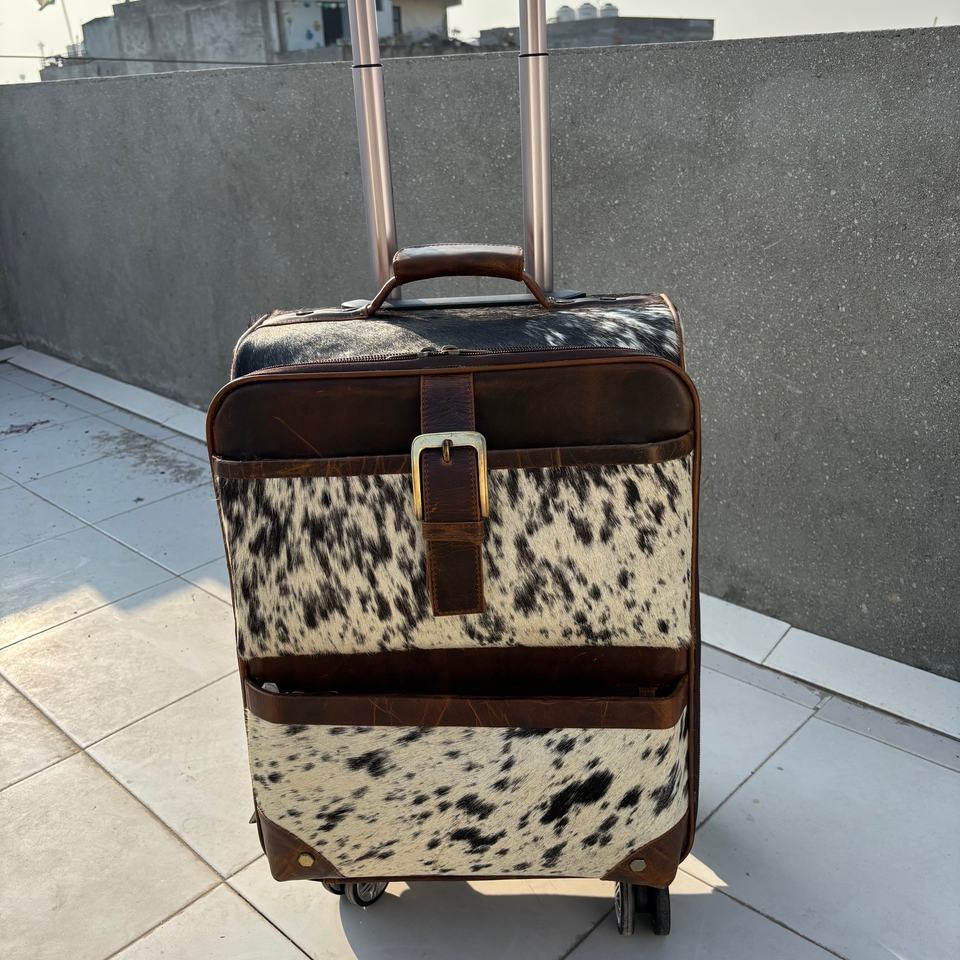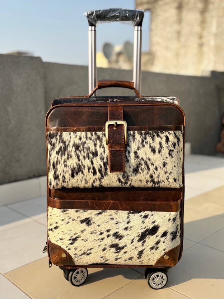 Best Quality Cow Hide Leather Trolley Bag Extra Large Storage Fashionable Travel Bag With Wheels Base And Adjustable Handle