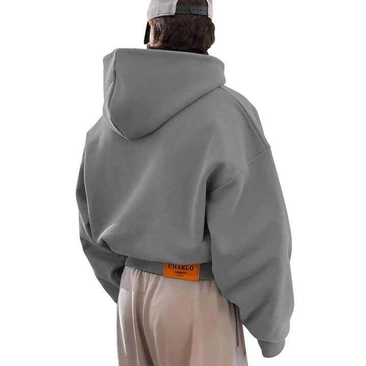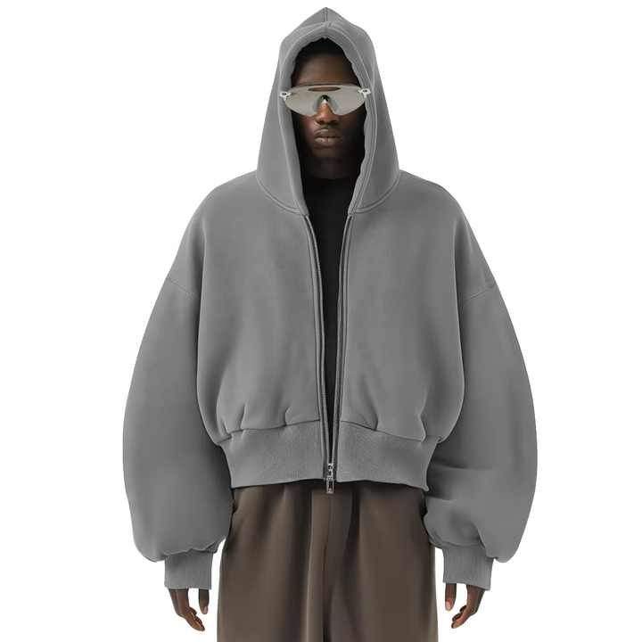 Best Quality Custom Drop Shoulder Blank Fleece Heavyweight Full Zip up Hoodie Oversized Boxy Cropped 520gsm Organic Hoodie Men