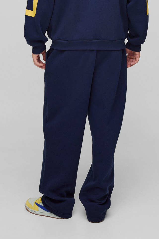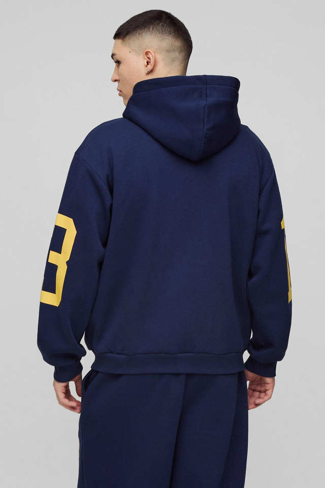 Best Quality Custom Logo Navy Blue Color Oversized Homme 13 Zip Through Hooded & Jogger 2Pieces Set Streetwear Tracksuit for Men