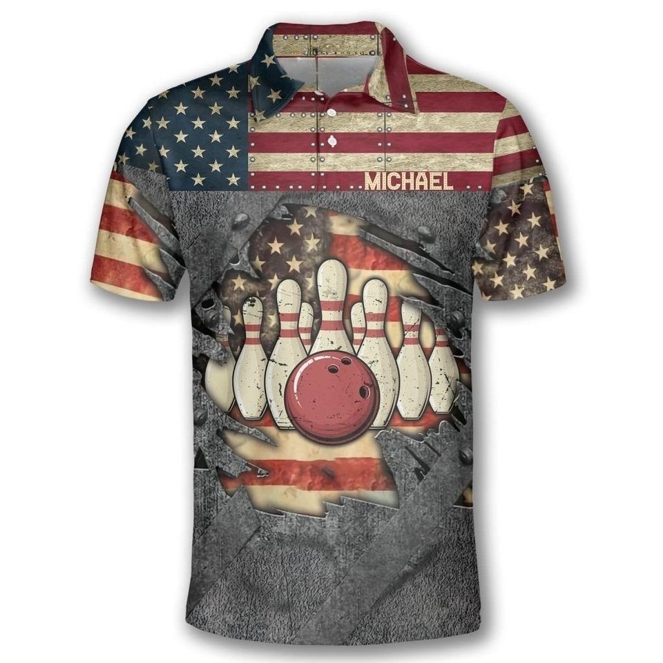 Mens bowling team shirts built with breathable athletic fabric and personalized name and number customization options