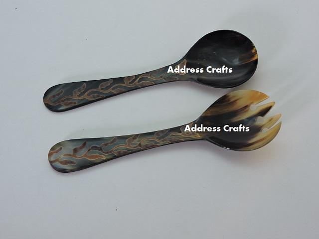 Best Quality Customize Natural Horn Salad Server Set Table Decorative Kitchenware Used Handmade Manufacturer From India Utensils