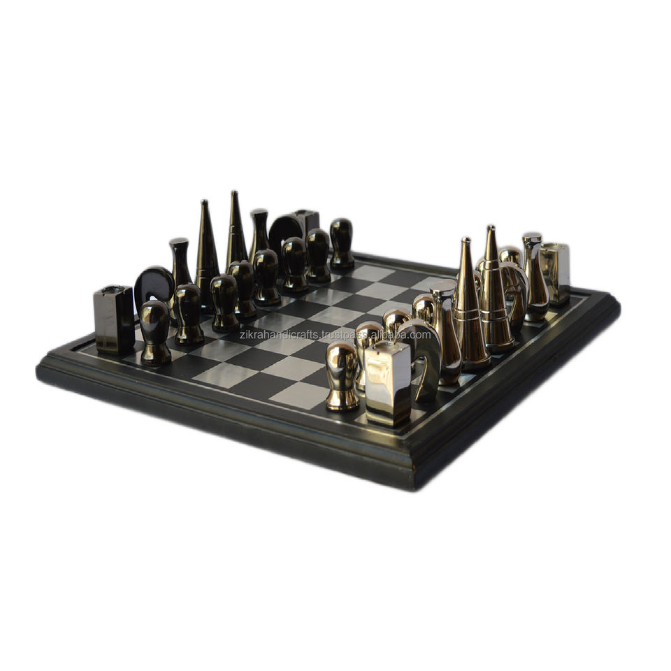 Best Quality Design Metal Chess Set With Shiny Finishing Design Colored and Plated Combo Decor Mind Game Wooden Chess Game