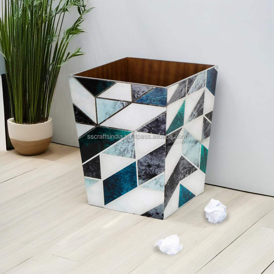 Best Quality Designer Wooden Dustbin Without Lid with Enamel Print Eco-Friendly Portable for Living Room Hotels Workspaces India