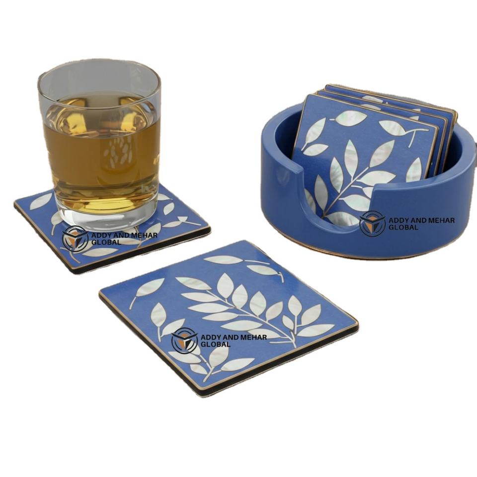 Best Quality Durable Blue & White Mother of Pearl 24-Piece Square Eco-Friendly Coaster Set Elegant Available in Bulk Quantity