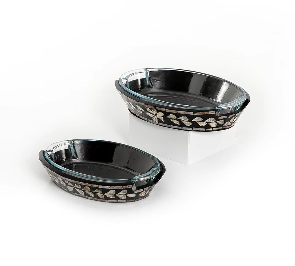 Best Quality Eco-Friendly Modern New Wood Resin Oval Shape Small Tray Black Color Mother Pearl Durable Dishwasher Safe for Royal