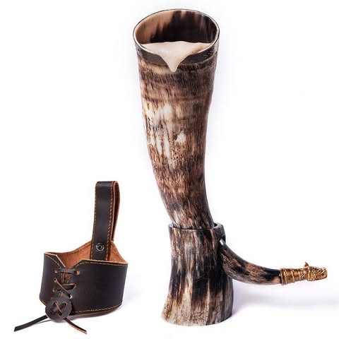 Best Quality Eco-Friendly Viking Drinking Horn Stand Polished Animal Angel Leather Holster Wholesale Decorative Horn Holder