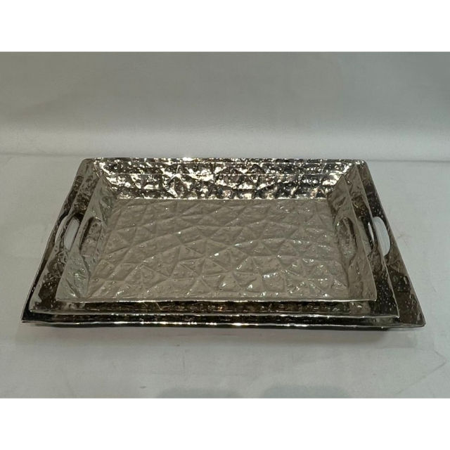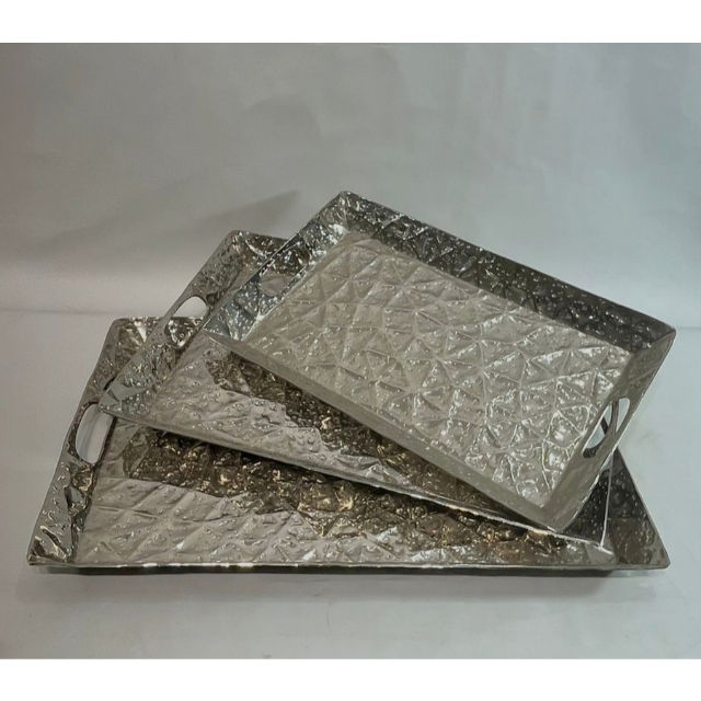 Best Quality Elegant Hammered Silver Serving Tray Set Handles luxurious stylish home decor wholesale price