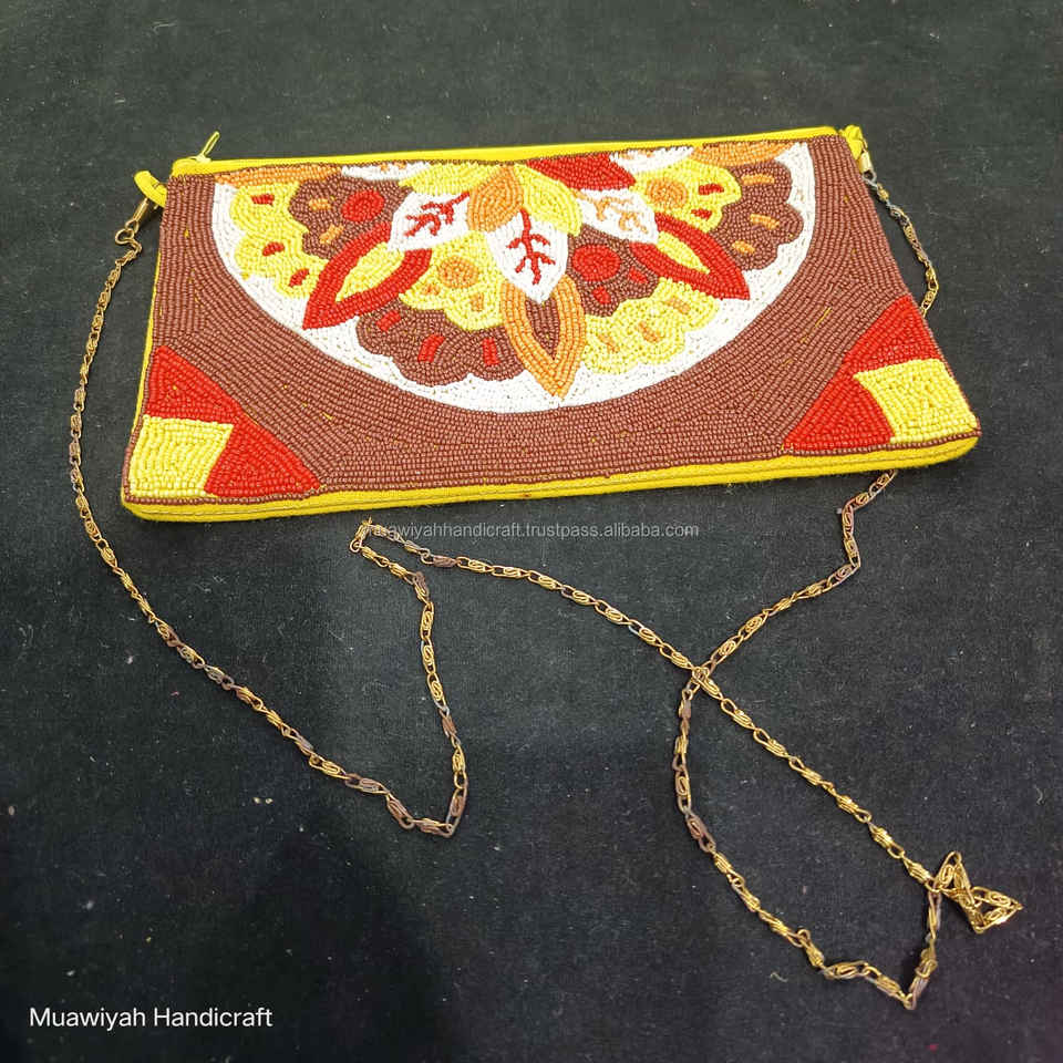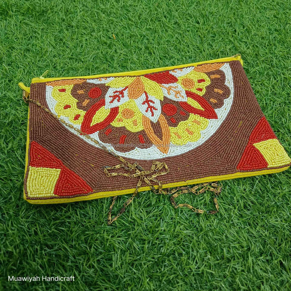 Best Quality Embroidery Yellow Durable beaded shoulder bag with bead embroidery beaded embroidery handbag with Unique design